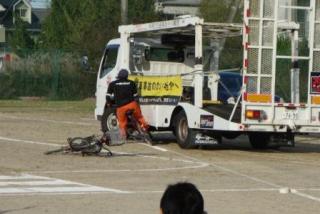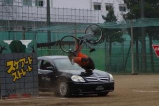自転車の安全な利用の仕方を学べるだけでなくスタントマンチームによる模擬事故を