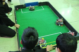 音楽に合わせてダンスをしたり、サッカーのようにロボットがボールを追いかけるロボットを披露しました。