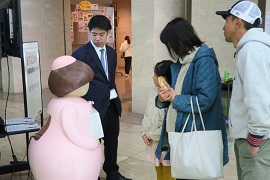 音声認識であいさつしたり、県民プラザの館内を案内してくれたりと、会場入り口で来場者を迎えていました。